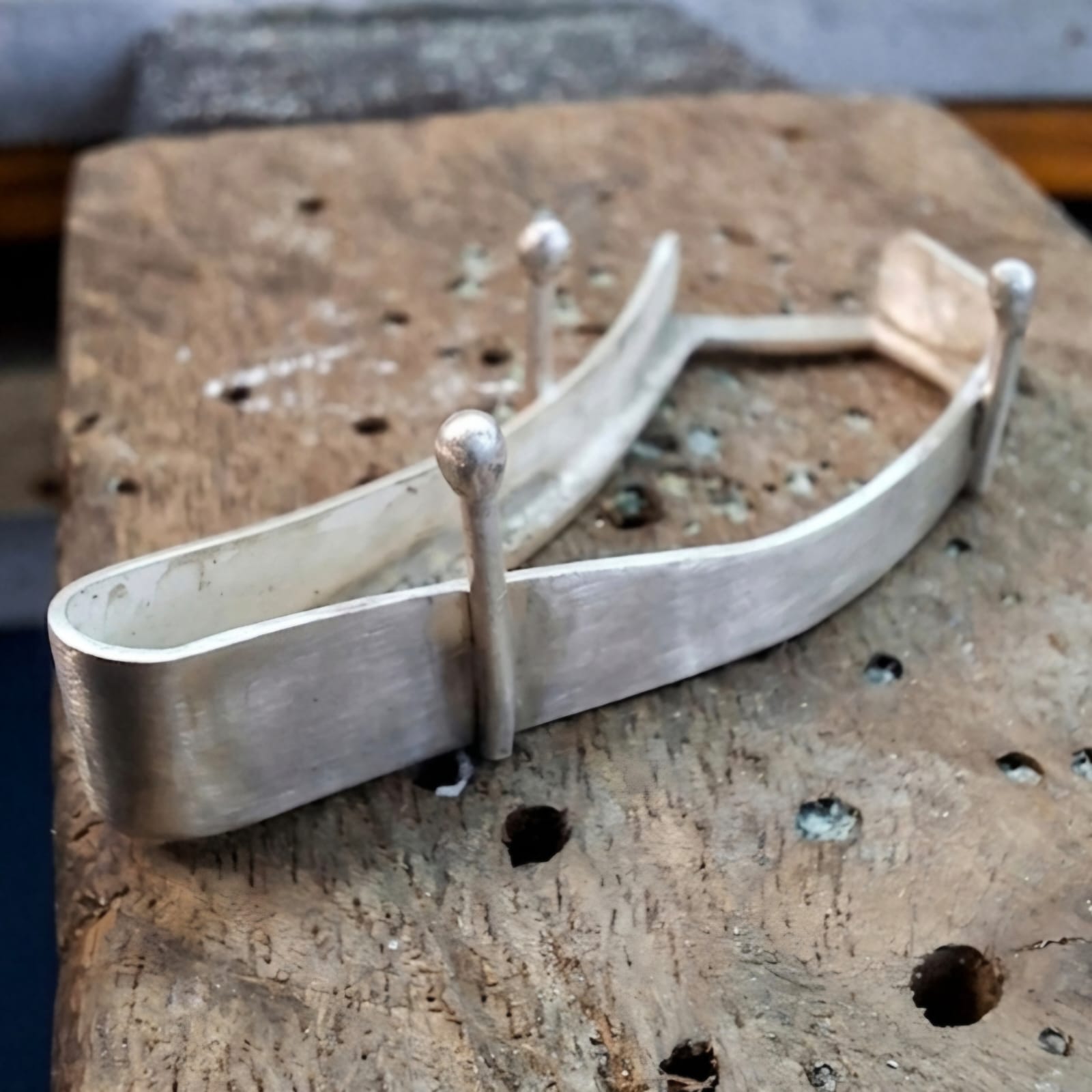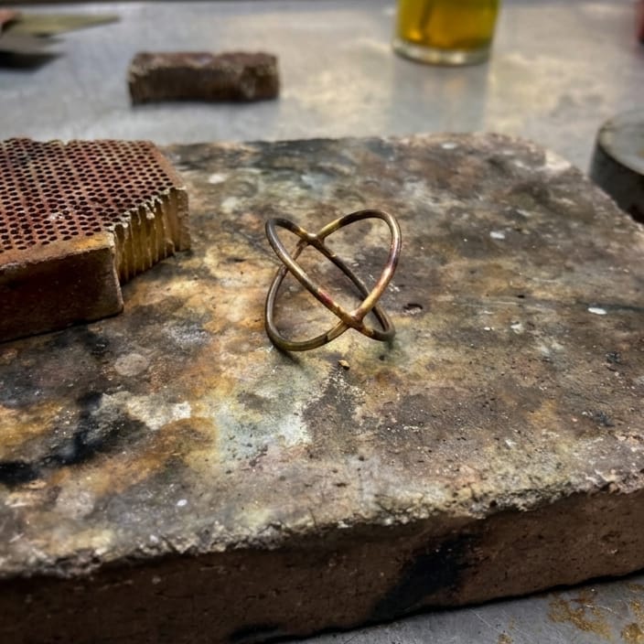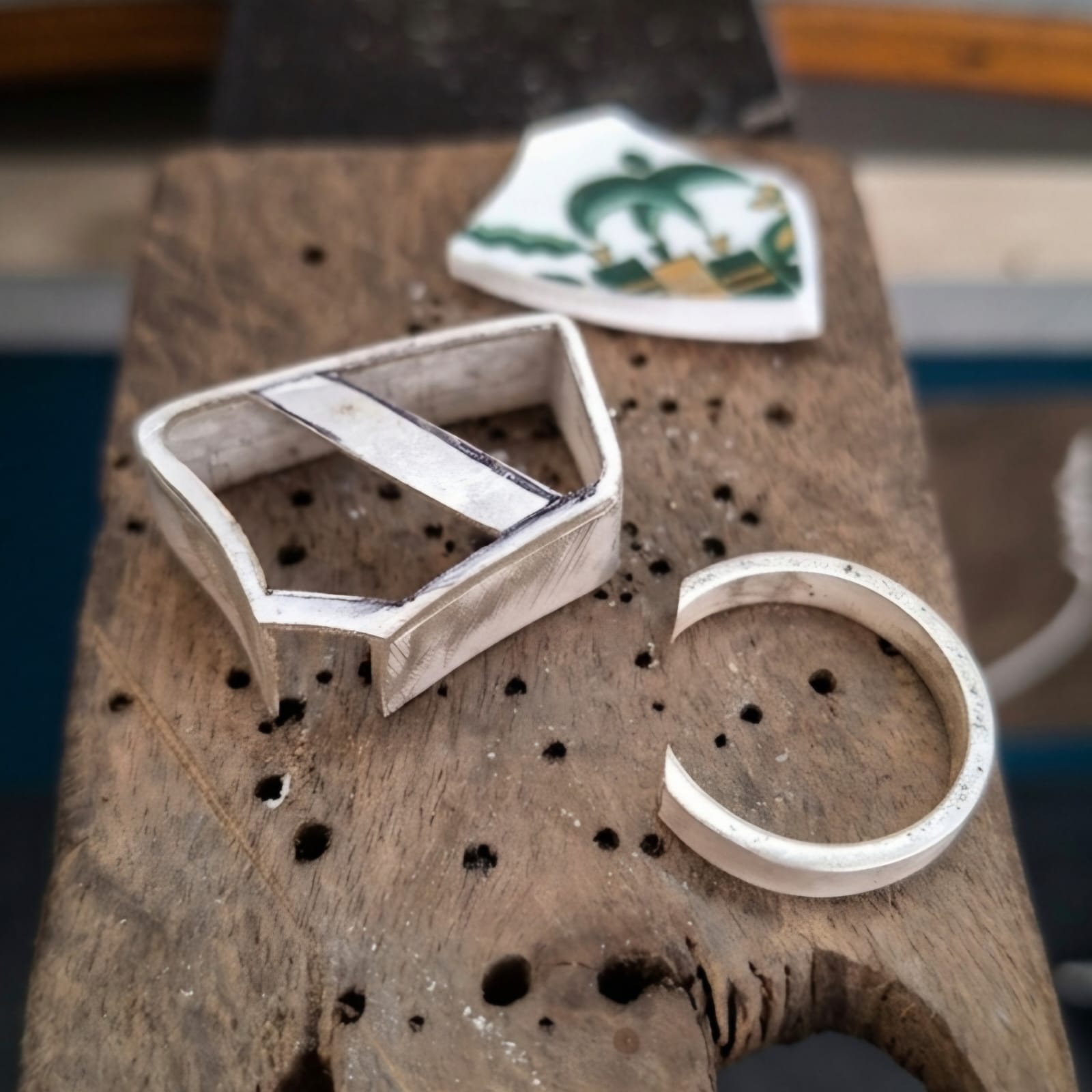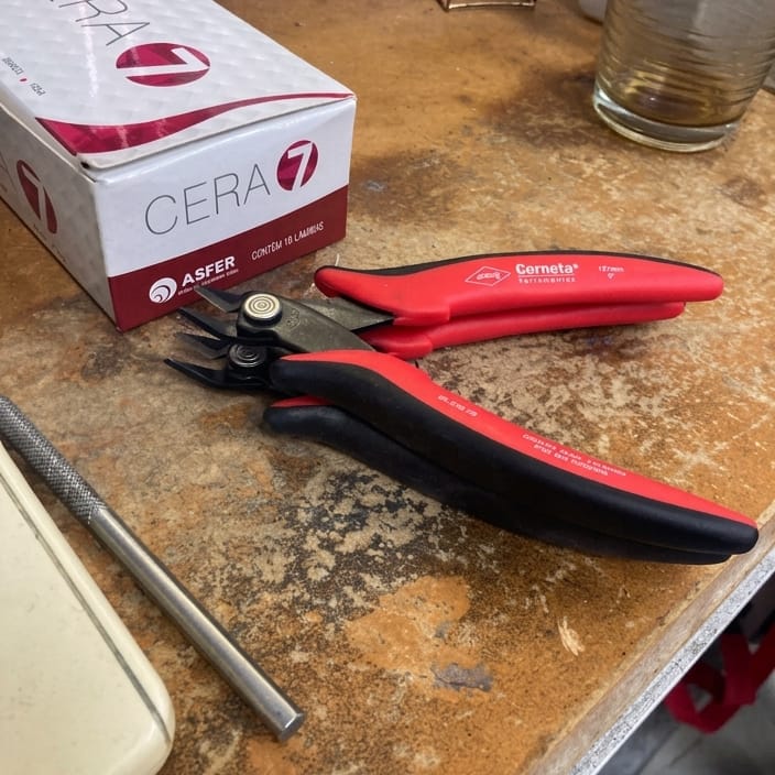 Esta seção é um registro do cotidiano no ateliê. Acompanhe o desenvolvimento das peças, o uso das ferramentas tradicionais e as transformações da matéria-prima. Cada peça que você vê na loja passou por estas etapas, recebendo atenção individual em cada solda e acabamento.